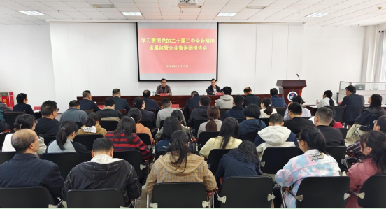 為深入學(xué)習(xí)貫徹黨的二十屆三中全會(huì)精神,按照省國資委安排,10月23日,學(xué)習(xí)貫徹黨的二十屆三中全會(huì)精神省屬監(jiān)管企業(yè)宣講團(tuán)到研究院宣講,省屬監(jiān)管企業(yè)宣講團(tuán)成員、省國資委企業(yè)隊(duì)伍建設(shè)處處長(zhǎng)唐志國作宣講輔導(dǎo),研究院黨委副書記、副院長(zhǎng)周波主持會(huì)議。
