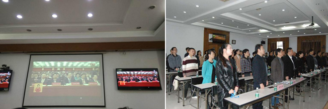 9時(shí)正,隨著李克強(qiáng)總理宣布大會開始,我集團(tuán)公司主、分會場與會人員全體起立,懷著激昂和真摯的情感同唱國歌,共同緬懷老一輩革命家。隨后,與會人員仔細(xì)聆聽了習(xí)近平同志所作的報(bào)告,大家聚精會神、專心聆聽,不時(shí)提筆記錄報(bào)告內(nèi)容和內(nèi)心感想,整個會場洋溢著濃厚的學(xué)習(xí)氛圍,聽到激動人心處都情不自禁地鼓掌,為我們偉大的祖國、偉大的中國共產(chǎn)黨而驕傲和自豪。大家紛紛表示要不忘初心,牢記使命,堅(jiān)決維護(hù)中央決定,堅(jiān)決同以習(xí)近平同志為核心的黨中央保持高度一致,始終堅(jiān)持黨的領(lǐng)導(dǎo),聽黨的話,以更加飽滿的精神狀態(tài),更加扎實(shí)的工作作風(fēng)努力工作,為實(shí)現(xiàn)美麗中國夢貢獻(xiàn)個人力量。