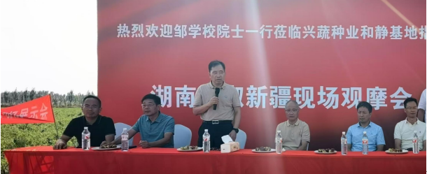 在致辭中,鄒學校以其深厚的學術(shù)底蘊和前瞻性的視野,深度剖析了辣椒育種領(lǐng)域的最新科研成果與未來發(fā)展方向,特別強調(diào)了興蔬辣椒在新疆地區(qū)的卓越表現(xiàn),尤其是對博辣天星721的耐鹽堿性狀給予了高度評價。他表示,這不僅是對育種團隊辛勤付出的最好回報,也是對我國辣椒育種技術(shù)的一次重要突破。鄒學校希望大家要繼續(xù)秉持創(chuàng)新精神,不斷優(yōu)化和提升辣椒品種,致力于實現(xiàn)辣椒種植不與糧食作物爭耕地的愿景,為保障國家糧食安全作出積極貢獻。李雪峰介紹了湖南省蔬菜研究所在辣椒遺傳育種方面的最新研究成果,并表達了對新疆辣椒產(chǎn)業(yè)發(fā)展的美好祝愿。