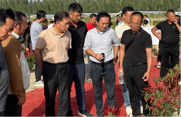 天山突兀拔地起,雪光燭天天尺咫。2024年9月19日,帶著豐收的喜悅,湖南興蔬種業(yè)辣椒品種新疆現(xiàn)場觀摩會隆重召開。本次觀摩會由湖南興蔬種業(yè)有限公司與湖南省蔬菜研究所聯(lián)合主辦。中國工程院院士、國家特色蔬菜產(chǎn)業(yè)技術(shù)體系首席科學家、湖南農(nóng)業(yè)大學校長鄒學校,湖南省蔬菜產(chǎn)業(yè)技術(shù)體系首席科學家戴雄澤,國家特色蔬菜產(chǎn)業(yè)體系崗位科學家劉峰,新疆生產(chǎn)建設(shè)兵團第二師22團黨委書記、政委張鑫,湖南省蔬菜研究所所長李雪峰,湖南興蔬種業(yè)有限公司董事長鄒家華蒞臨現(xiàn)場,共同見證辣椒產(chǎn)業(yè)的新篇章。