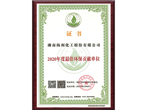 2020年度最佳環(huán)保貢獻(xiàn)單位