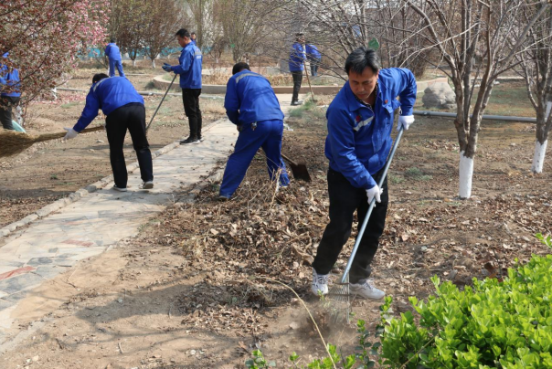 陽春三月,春暖花開,綠草返青,涿州公司保潔綠化人員的工作應(yīng)接不暇。辦公樓東側(cè)兩個(gè)花園里冬天遺留的干樹枝和白色垃圾的存在,影響了此處美景。上午9點(diǎn)進(jìn)行主題黨日理論學(xué)習(xí)之后,支部書記李俊同志身先士卒,在崗黨員、干部、入黨積極分子緊隨其后,鐵锨、掃帚、耙子、小推車等勞動(dòng)工具齊上陣,你看,有的在撿樹枝,有的在撿垃圾,有的清掃枯葉,有的在平整土地,有的在裝車.....,場(chǎng)面好不熱鬧。經(jīng)過近2個(gè)小時(shí)的勞動(dòng),兩個(gè)花園的環(huán)境改善了很多,同志們雖然滿身灰塵,但是看著勞動(dòng)成果,心中充滿了開心和喜悅。