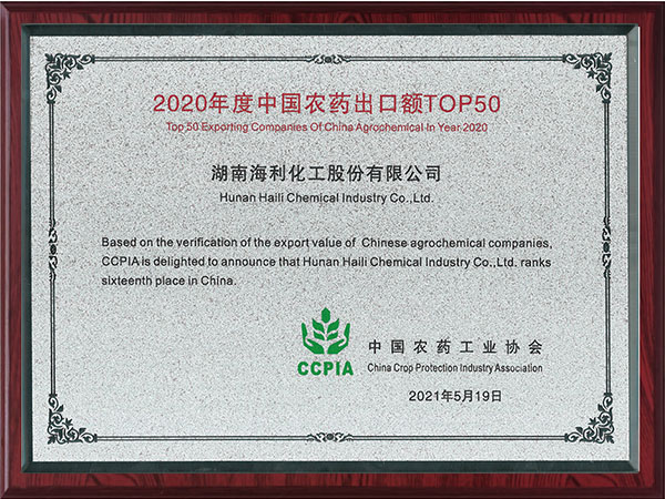 2020年度中國(guó)農(nóng)藥出口額TOP50